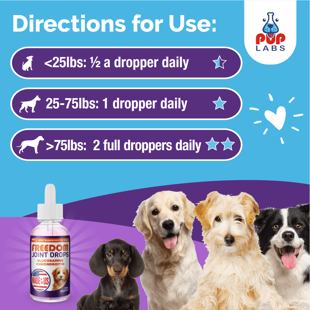 Freedom Joint Drops targets what I believe is the underlying root cause of nearly all dog joint issues: synovial drying.